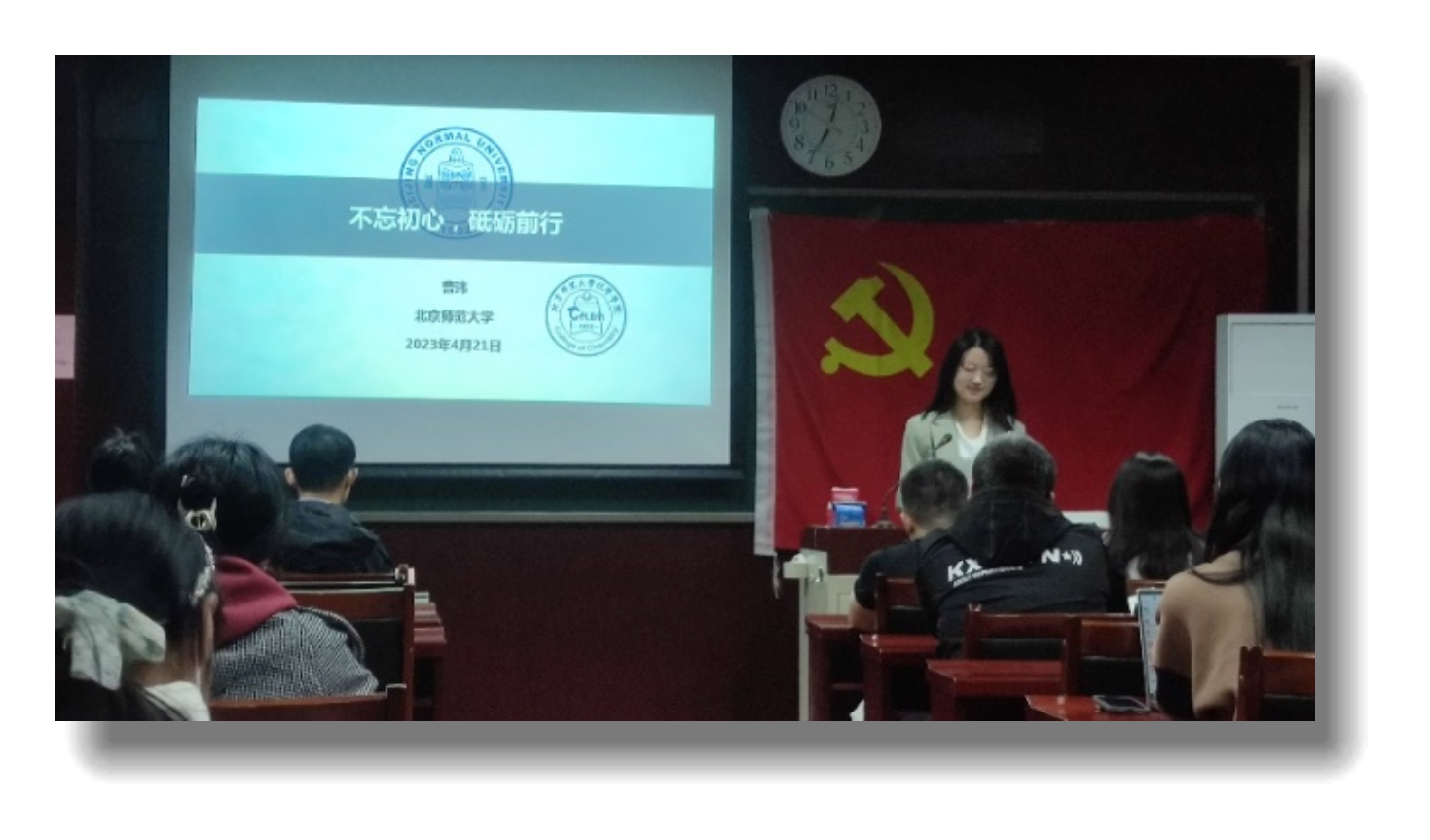 曹玮老师首先结合科研和留学经历讲述了自己身为学生阶段的所见所闻,其次描绘了由学生到青年教师身份转变的心路历程,以生动幽默的形式将自己宝贵的科研体会进行了分享。并表达了新青年一辈将坚持中国共产党的领导,坚定的跟随祖国的脚步,砥砺前行!参会的成员们也以饱满的热情与曹玮老师进行了面对面的交流与互动。