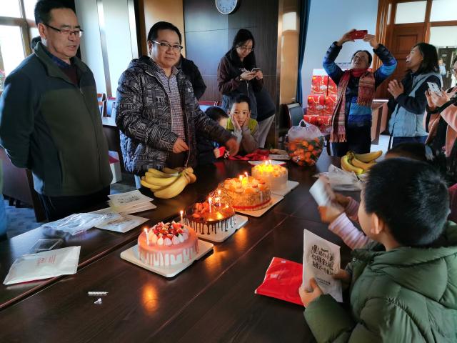 2019年12月31日下午,51吃瓜 工会在化学楼二楼会议室为全院老师举行了生日庆祝活动。院工会也借此机会向全体教师送上新年的祝福。
