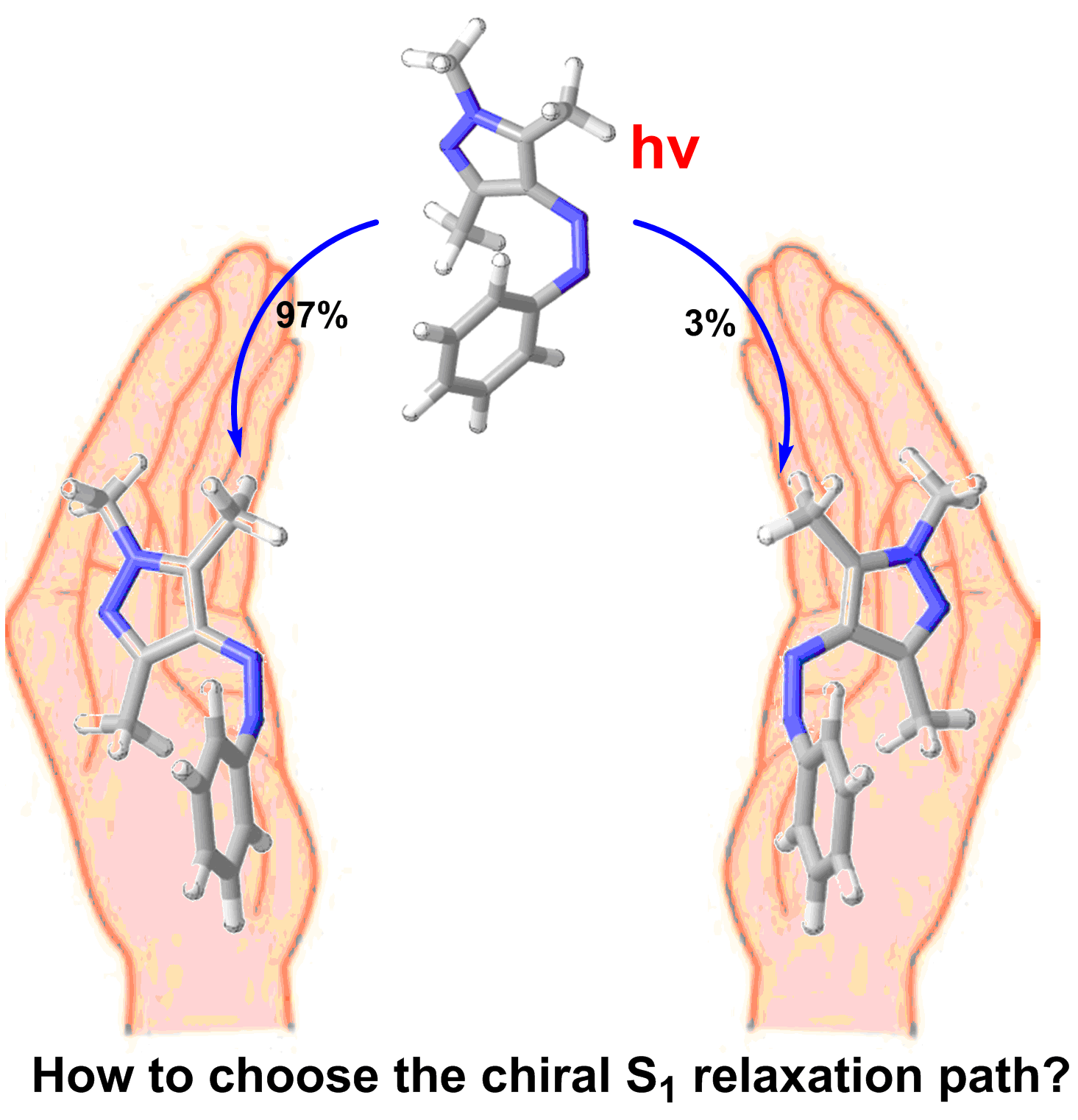 近期的实验研究发现一类新奇的五元芳香偶氮吡唑具有良好的光异构化效率及热稳定性,但其光异构化机理及动力学行为在原子水平上尚不清楚。最近,崔刚龙、方维海研究组和德国马普所Thiel教授合作,利用静态电子结构计算和非绝热动力学模拟,对两类芳香偶氮吡唑光开关化合物(Z11和Z8)的顺反光异构化机理和激发态衰减动力学进行了深入细致的研究,发现两条无势垒的S1激发态弛豫路径。动力学的分析显示Z11和Z8的激发态衰减具有迥异的性质。对于Z8,两种路径对S1激发态衰减的贡献相当(50% vs. 50%);然而对于Z11,两个手性构象几乎仅仅只采用其中一个S1弛豫路径来衰减(97% vs. 3%),具有专一的立体选择性。据他们所知,Z11芳香偶氮吡唑是发生立体专一的单方向激发态弛豫的首例化合物。他们也认为,由于芳香偶氮吡唑具有独特的光物理和光化学性质,这类光开关化合物将会有更加广阔的研究和应用前景。