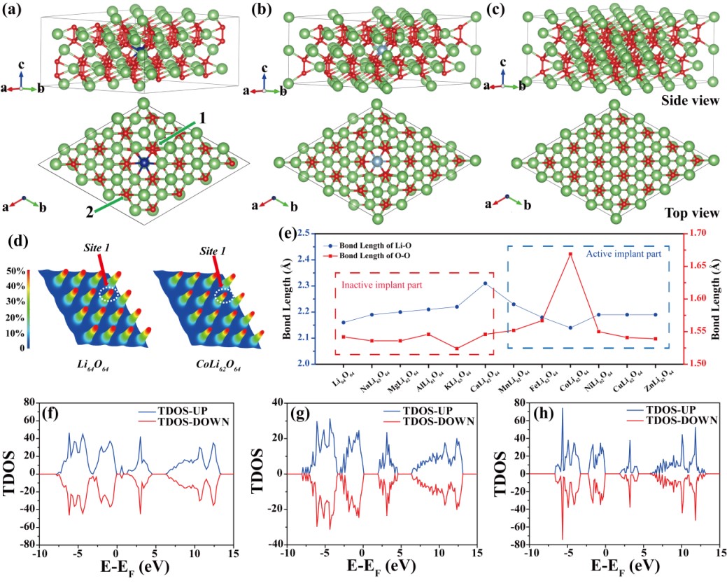 基于上述问题,51吃瓜 孙根班教授团队与加州大学圣克鲁兹分校陈少伟教授团队合作,利用原位电化学植入法结合理论计算模拟,构建了一种锂空气电池自催化新体系,并系统地研究了其反应机理及电池性能。该工作首先基于密度泛函理论(DFT)进行了理论研究,发现通过金属离子掺杂放电产物Li2O2可显著提升LAB性能,进而通过理论计算指导实验筛选出最有效的掺杂元素为Co元素。与原始Li2O2相比,CoLi2-xO2具有显著增强的导电性、拉长的O-O键和降低的分解势垒。实验中,在电化学过程中将金属离子原位嵌入放电产物Li2O2,实现产物结构的内在调控,有效促进了Li2O2的分解。这是由于在充放电过程中,Co-Ox位点可作为自催化活性中心,避免多相界面的形成,促进Li2-xO2的分解,实现放电产物的自催化。与传统锂空气电池(TLAB)相比,这种自催化锂空气电池(SCLAB)的过电位仅为0.84V。在低极化下可超过118个循环,并实现3000 mA g-1的快充性能,在10分钟内快速充电至满容量,循环次数为260次。本结果突出了原位结构工程在提高电化学能源技术性能方面的重要性,同时为新型高性能锂空气电池体系的开发和设计提供了全新的思路。