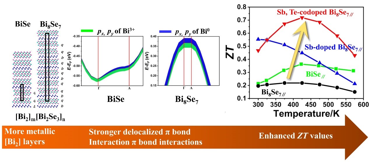 揭示室温热电材料[Bi2]m[Bi2Se3]n家族层间离域π键提升层间载流子迁移率机理