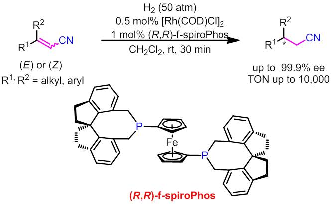 α,β-不饱和腈类化合物的高效、高对映选择性不对称催化氢化