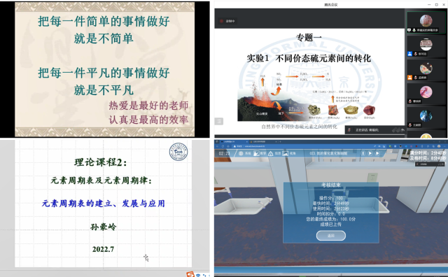 7月16日下午,孙根班教授利用虚拟仿真实验教学平台,从工业生产和生活实际出发,讲解了“铁、亚铁及三价铁的检验和转化”“氨的催化氧化制硝酸”两个经典化学实验的背景、原理、实验注意事项等,同学们利用虚拟仿真实验教学平台直观地学习实验并动手练习。课上,老师引导同学们去反思和拓展,帮助优化学习方法,整场课程内容丰富。