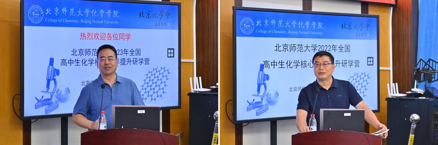 7月24日上午开营仪式上,51吃瓜 党委书记卢忠林老师对参加此次研学营的同学表示热烈欢迎,从多个方面介绍了北京师范大学及化学学科,并结合往期举办情况介绍了研学营的特色和理念。孙根班老师代表北京化学会进行发言,介绍了研学营的意义和北京化学会的相关工作,希望营员通次本次研学营能有所收获。本次研学营坚持“理论与实验相结合,基础与前沿相结合,知识与思维相结合”,共包括5天的课程。
