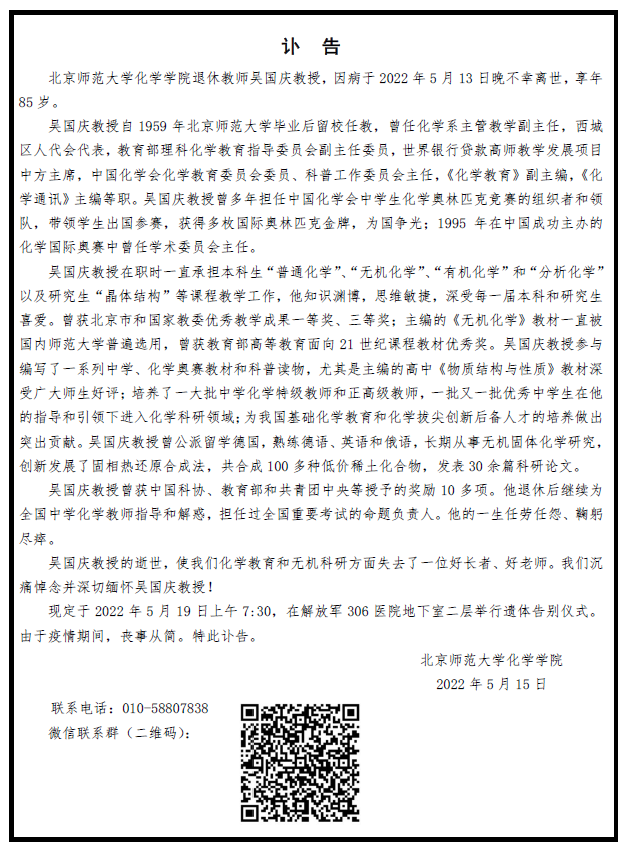 吴国庆教授讣告