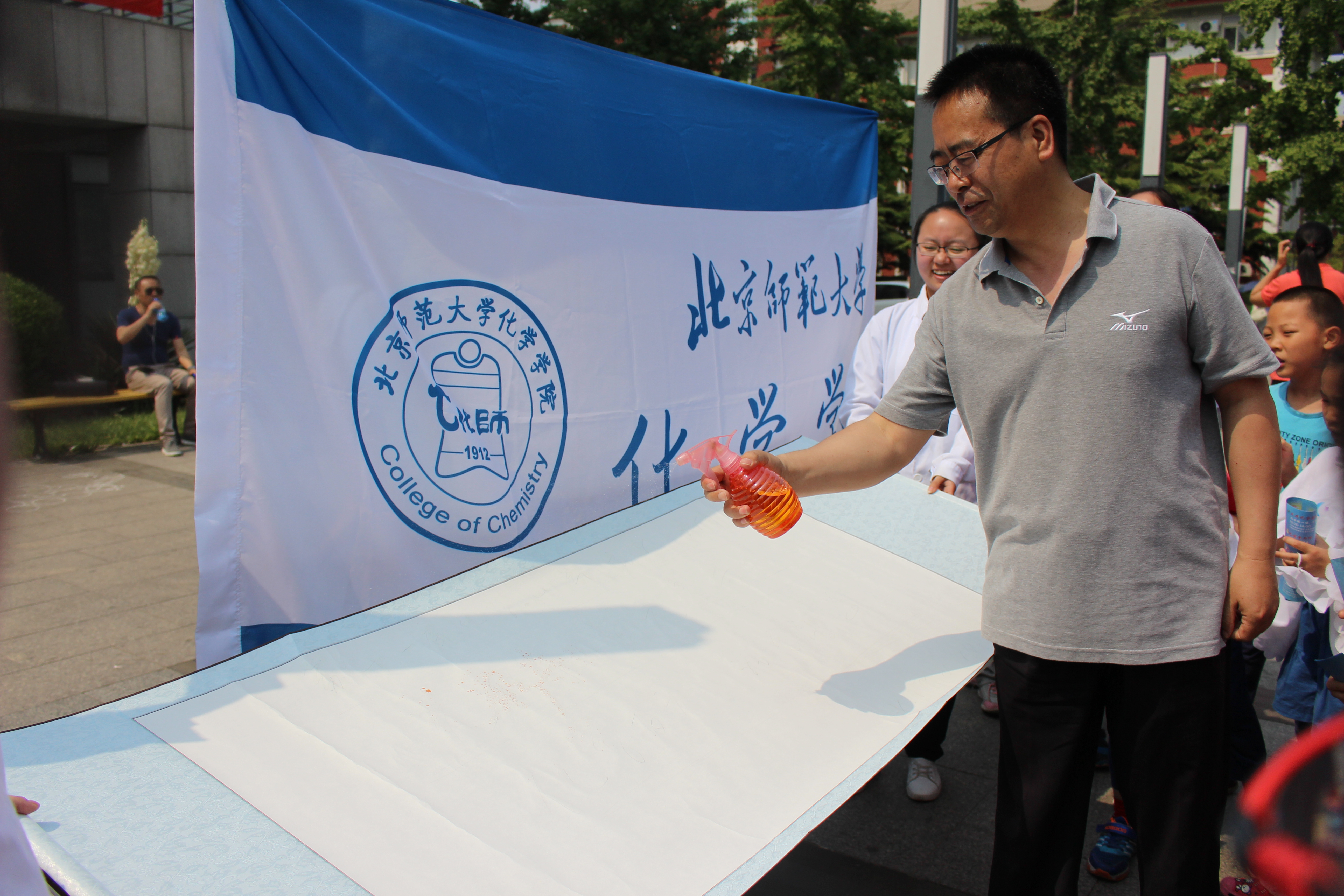 在邱季端北侧的实验一条街,卢忠林老师课题组和汪辉亮教授课题组的研究生分别向公众展示了生物柴油和可变性水凝胶的实验;我院同学向公众展示了大象牙膏、水中花园、晴雨花、喷雾作画等13个精彩有趣的化学实验,并对实验现象和原理进行了详细的解释。在东西操场之间的化学知识展板前,我院同学为公众详细地讲解了生活中的化学知。在各展区的化学趣味猜谜活动让公众感受化学名词的魅力。手工坊活动让公众亲手制作护手霜和蜡烛,亲身体验化学实验的乐趣和奇妙。