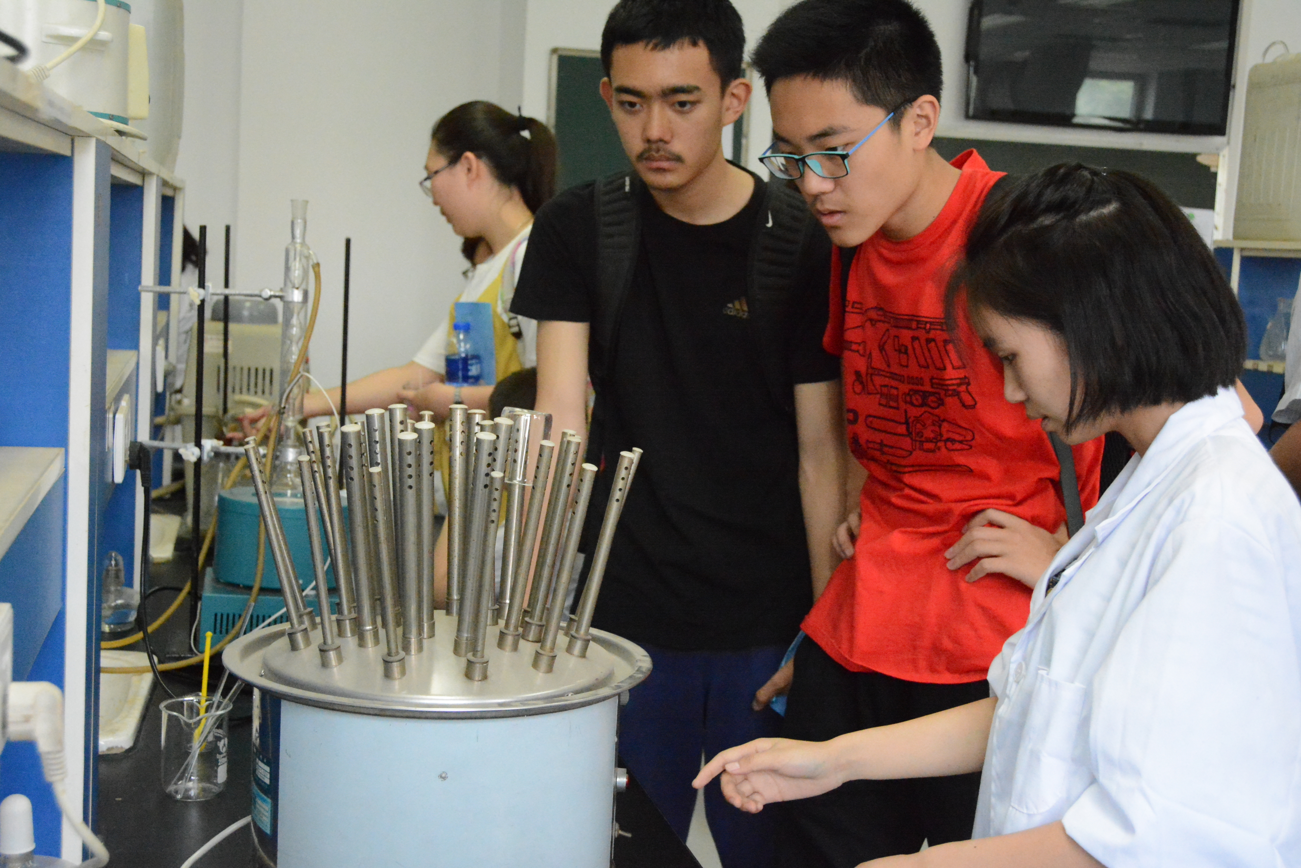 在化学楼内,教学实验室、科研实验室、核磁共振仪、磁性测量仪及扫描电子显微镜大型仪器展示在公众面前,让公众一睹先进的仪器和实验室。化学楼前,京华尔科贸有限公司、莱普特科学仪器(北京)有限公司、艾卡(广州)仪器设备有限公司和塞默飞有限公司带着最新的企业产品向公众展示化工企业的最新成果。北京华尔达科贸有限责任公司和北京志东方科技有限责任公司同时带来了优秀化工企业报告。两家企业就公司的发展史、发展现状、发展理念和发展规划等方面进行了展示,同学们被优秀化工企业精益求精、力求完美的发展理念深深感染。