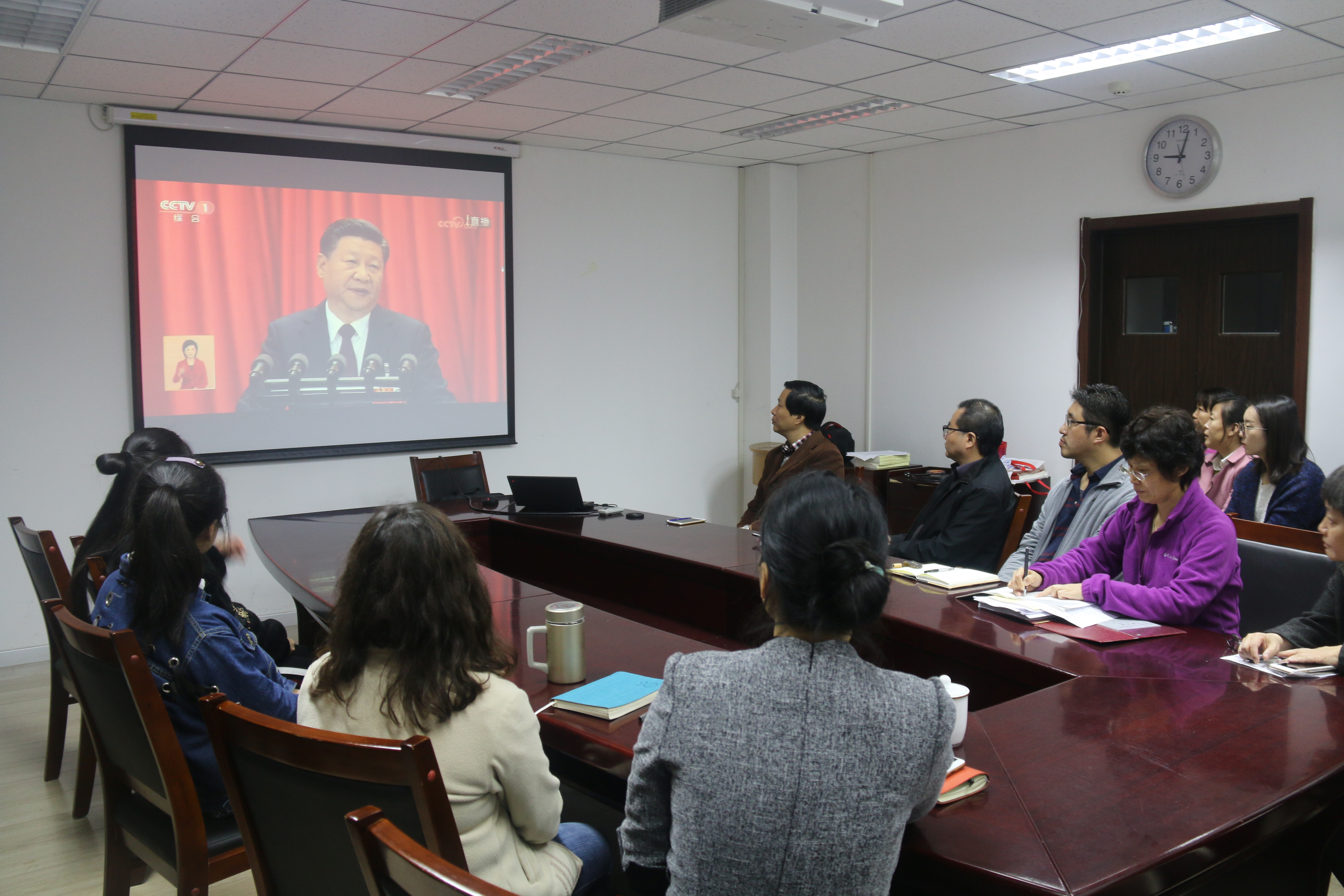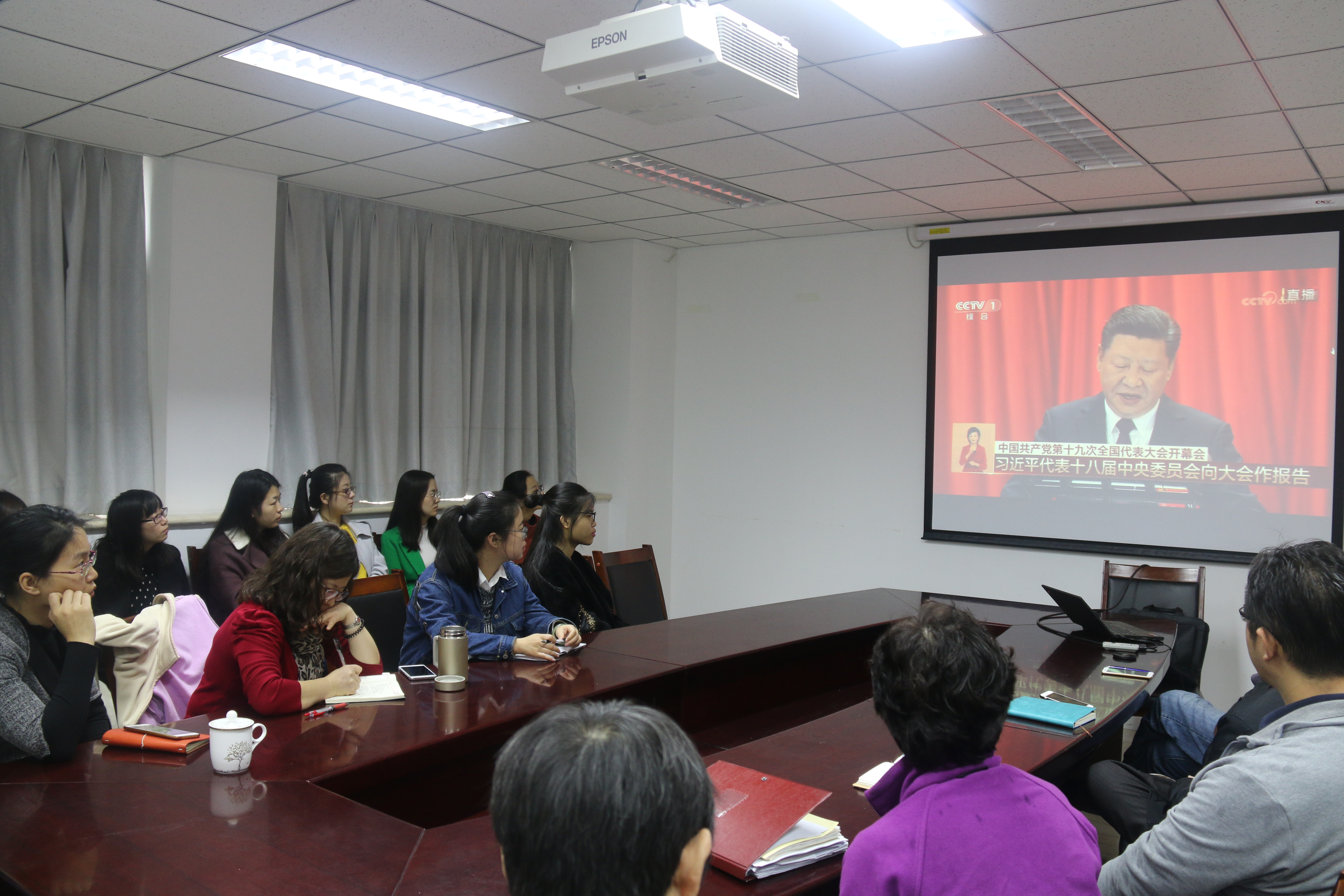 高度关注十九大的召开,学院分党委委员、教师党支部书记和学生党支部书记30余人在314会议室共同收看大会直播,认真学习领会大会精神。开幕式结束后,老师和同学们纷纷表示,报告中高屋建瓴地提出“中国特色社会主义进入新时代”的重大论断和社会主要矛盾已经转化的重大判断,系统提出了新时代中国特色社会主义思想和基本方略,标定了我国发展新的历史方位,充分体现了马克思主义中国化的最新成果,充分体现了党的十八大以来以习近平同志为核心的党中央提出的治国理政新理念新思想新战略,内涵丰富,意义深远。