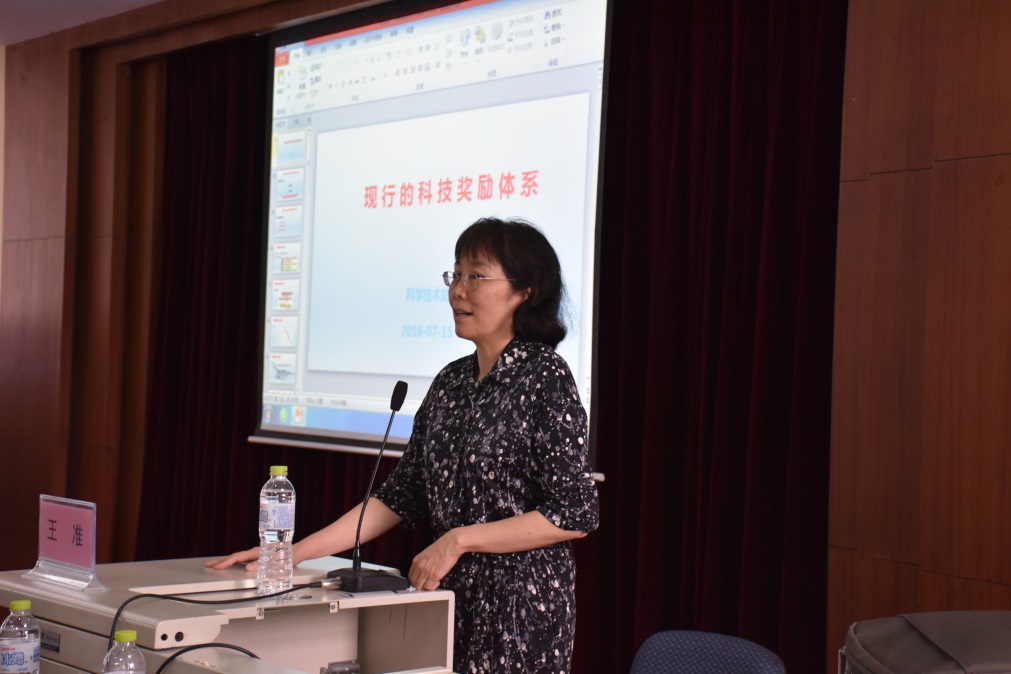 学科评估中的本科教学情况,从本科生培养方案的三制三化和优质通识教育课程的建立等方面为化学院的教学改革提出了合理的指导和建议。历史学院耿向东教授给化学院全体教师带来了“红军长征及其当代价值”的精彩演讲,从长征的历史背景、长征的过程和长征胜利三个方面详细介绍了红军长征的历史意义和当代价值。科技处副处长王准老师就现行的科技奖励体系情况,详细介绍了国家级、省部级科学技术奖的申请、评审和颁奖过程,并且热情地鼓励化学院教师积极申请各级科学技术奖项。