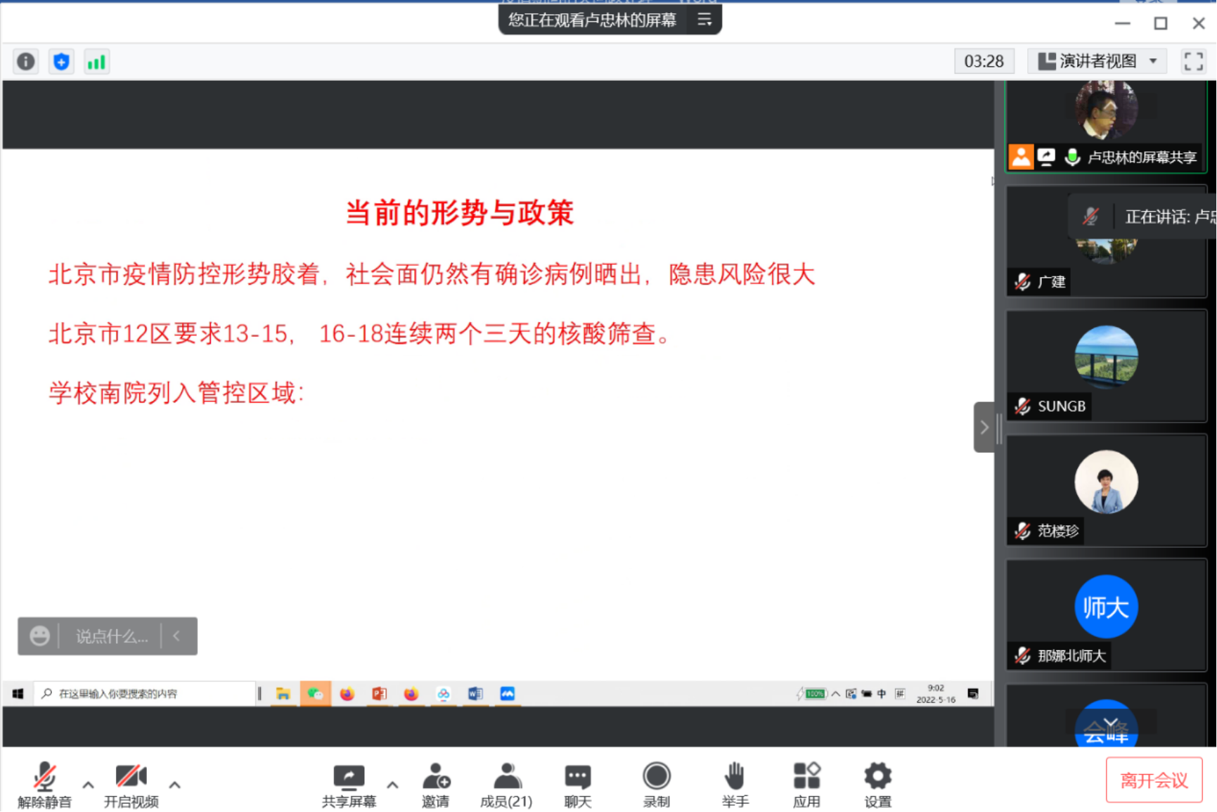 (5月16日,学院召集二级学科负责人和教师党支部书记召开疫情防控、实验室安全和学生安全专题会)