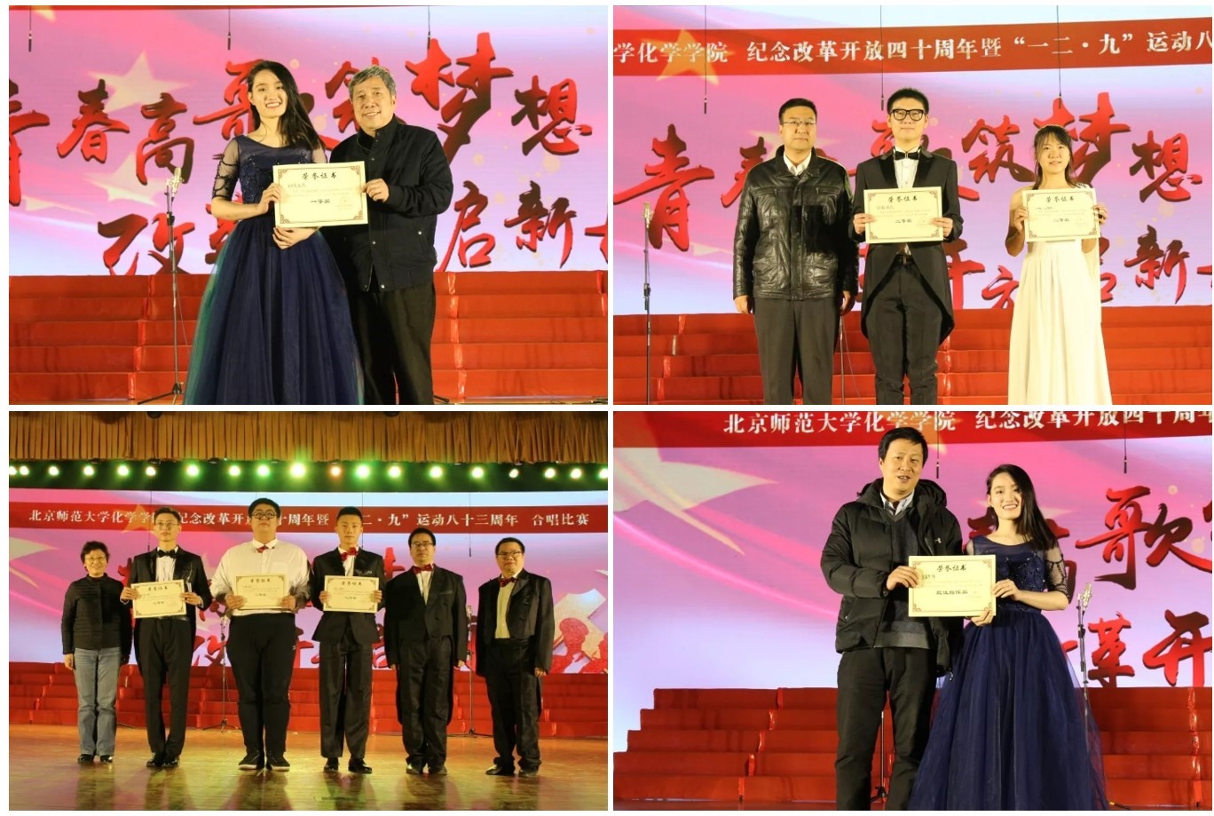 经过评委老师们公正、公平的评选,研究生队获得此次比赛的一等奖,2016级1、2班联队 、励耘联队获得合唱比赛二等奖,2016级3班、2017级1、2班联、2017级 3班获得合唱比赛三等奖,励耘联队获得最佳风采奖,邓钧文和王舒炜获最佳指挥奖。陈光巨老师、刘长旭老师等领导和嘉宾分别为获奖团队和个人颁奖。