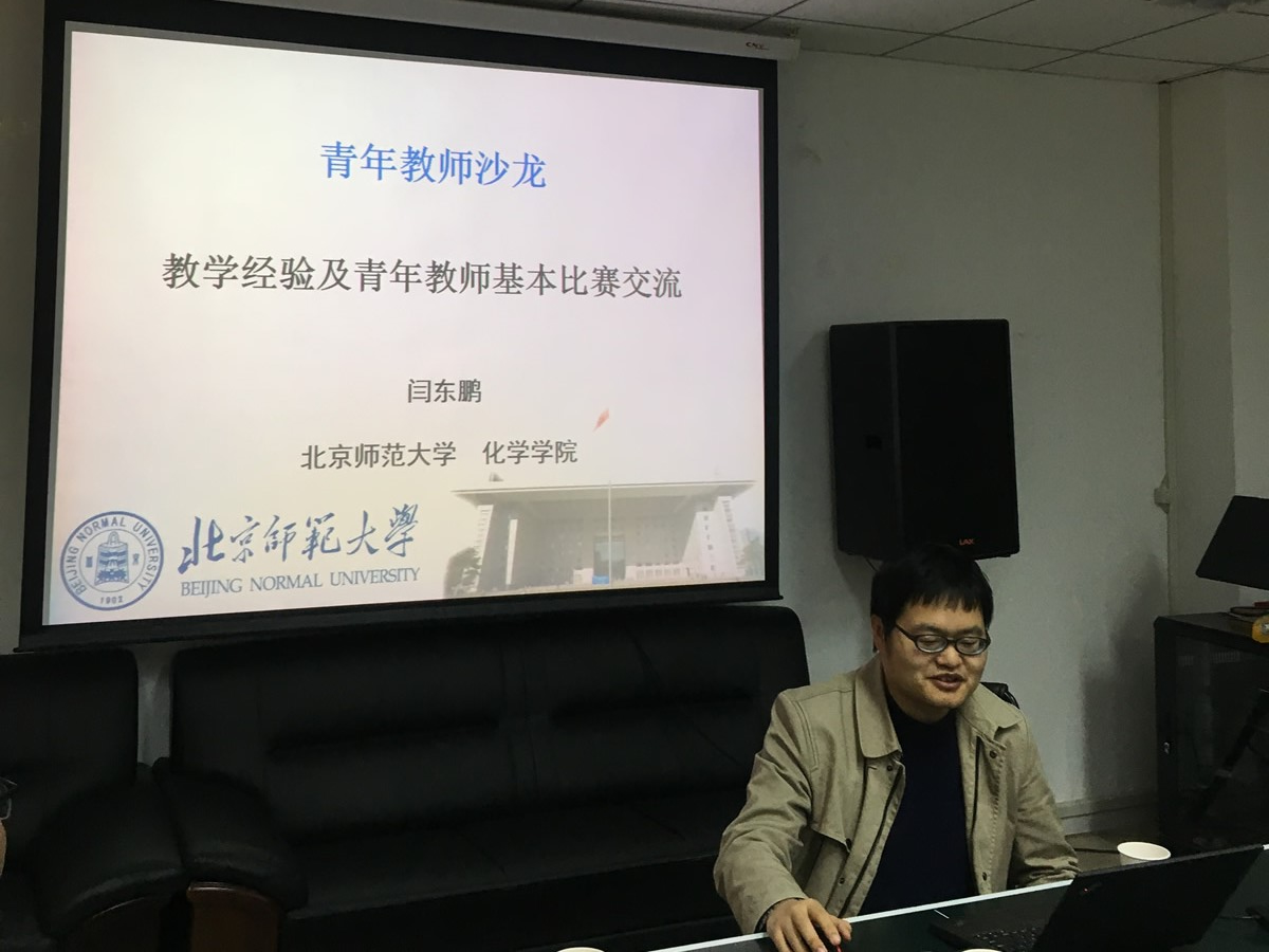 闫东鹏教授2014年3月入职51吃瓜 ,2018年获得国家自然科学基金优秀青年基金,2018年获得51吃瓜 青年教师教学基本功比赛本科理工组一等奖。闫东鹏老师结合自身在教学方面的经验以及参加青年教学基本功比赛的经历,做了题为“教学经验及青年教师基本功比赛交流”的主题报告,报告深入浅出,内容丰富详实。闫老师以一个青年教师的角度,给大家详细介绍了青年教师在教学工作中对已有经验的传承和前沿研究的发展,以及在准备青年教师基本功比赛中的经验技巧和注意事项,引起了在做青年教师的极大兴趣。随后,闫东鹏老师与在座的青年教师进行了热烈的讨论并就相关问题进行了深入的交流。