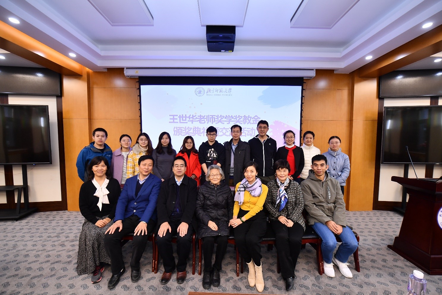颁奖典礼后,王世华先生为学院学生代表进行了交流报告,结合她自身的成长故事,寄语同学们,要珍惜现在的学习环境,树立自立自强的意识,戒骄戒躁,踏踏实实地做好科研,为祖国的发展贡献自己的力量!王老师设立“王世华奖学奖教金”是为了嘉奖和鼓励从事在固体化学研究领域做出出色工作的教师和学生,她鼓励所有同学在科研的路上锐意进取,创造更好的未来!