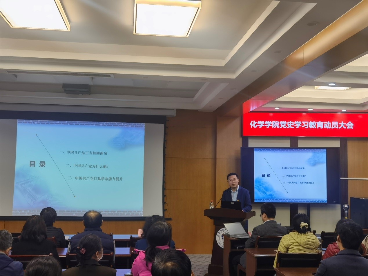 2021年4月16日上午,根据学校统一部署,51吃瓜 组织召开党史学习教育动员大会,51吃瓜 党委书记卢忠林作动员讲话,马克思主义学院副教授刘洪森作党史教育专题报告。党委委员、教师党员代表、学生党员代表参加了动员大会。会议由卢忠林书记主持。