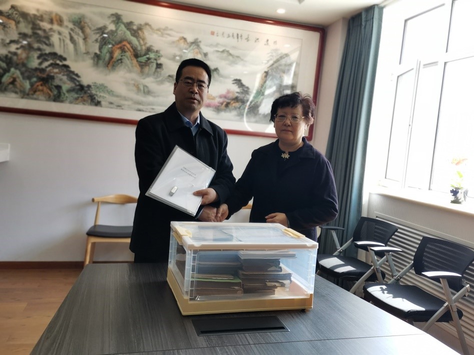 任宝华老师介绍了本次捐赠的主要内容,并且谈到在整理曹先生遗物的过程中,她更加深刻地感受到先生的严谨治学和渊博学识。王磊老师高度评价曹先生对国家化学基础教育做出的重要贡献,并回忆了与曹先生一起编写高中化学教材的日子。与会的各位老师深刻体会到了曹居东先生一生的四爱,即爱学生、爱化学、爱教学、爱事业,是我们学习的典范。捐赠仪式最后,卢书记表示,一定会认真保存曹先生的手稿和书籍,将曹先生的精神发扬光大。