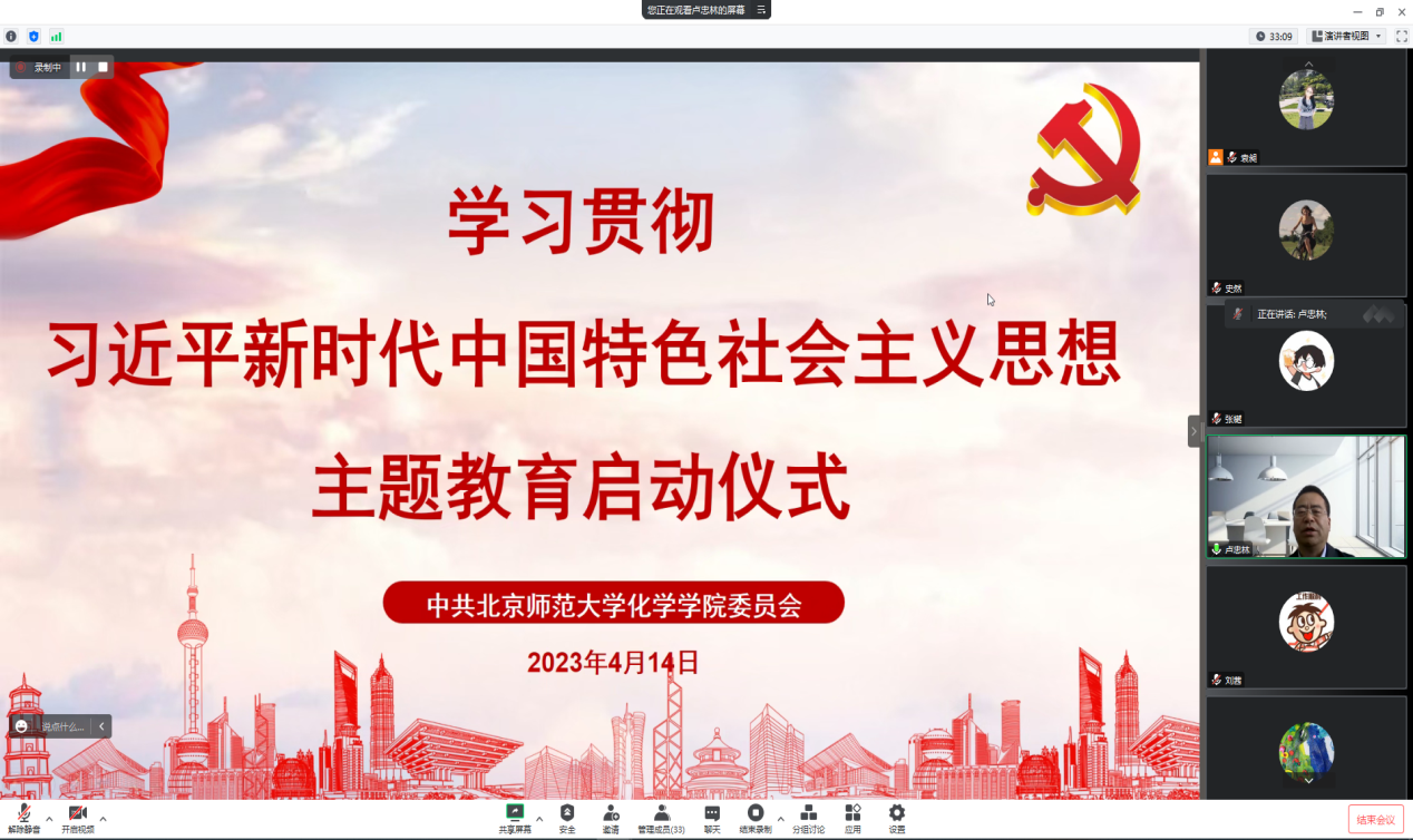 启动仪式以来,化学学院以高质量理论学习推动主题教育持续走深走实,举办系列主题教育读书班,将扎扎实实“读原著学原文”作为读书班核心环节,结合学科不断创新学习方式,形成了独具特色的集中理论学习形式。一是深学,坚持原原本本地学、逐字逐句地学,每次读书班学习班子成员均提交1份学习成果。二是活学,通过个人自学、轮流领学领读、视频辅导、党课引领、研讨交流等灵活多样的学习形式,加强学习效果。三是研学,班子成员围绕学科发展,立足自己分管的工作、结合具体研究问题,不断学习领会党的二十大精神和习近平新时代中国特色社会主义思想。