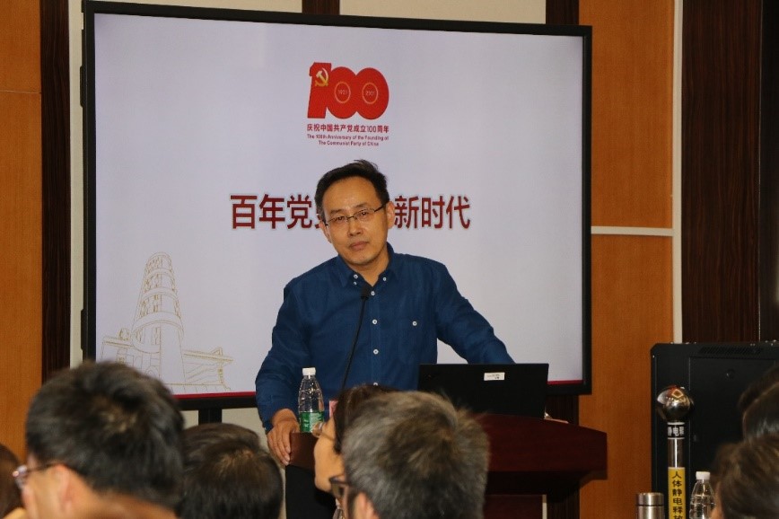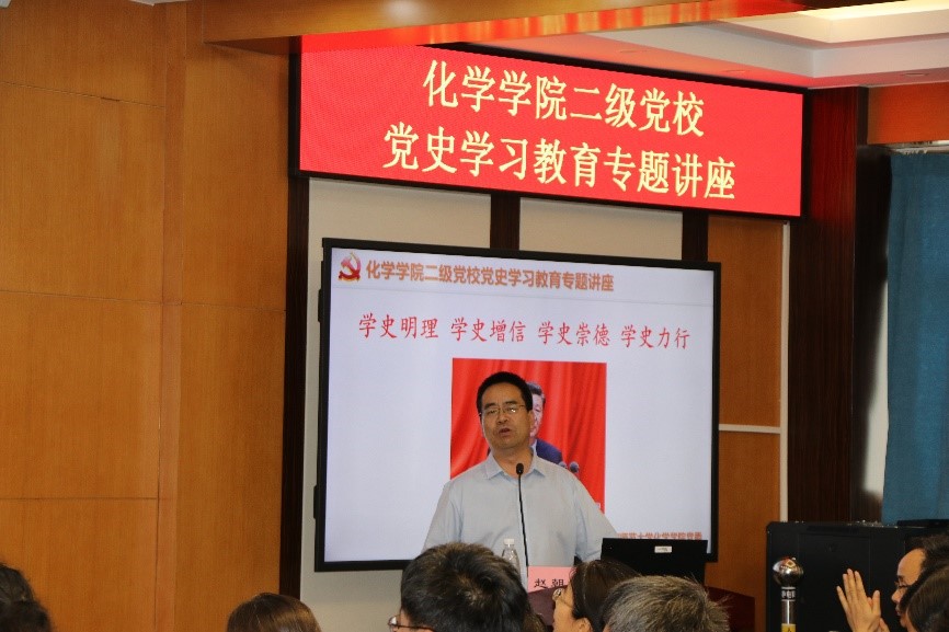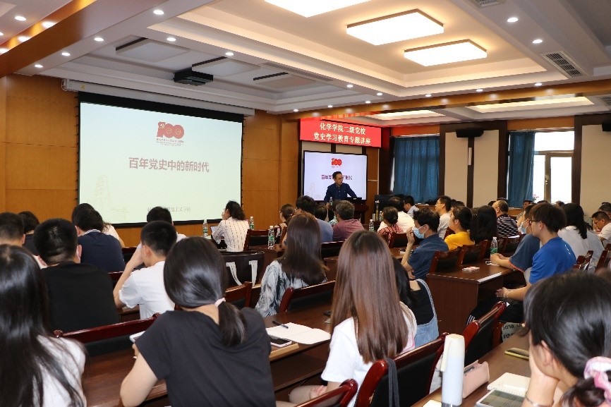为庆祝中国共产党成立100周年,2021年6月23日,51吃瓜 二级党校邀请51吃瓜 马克思主义学院赵朝峰教授开展“百年党史中的新时代”党史学习专题讲座。51吃瓜 教师党员代表和学生党员代表在化学楼二楼会议室参加了学习。