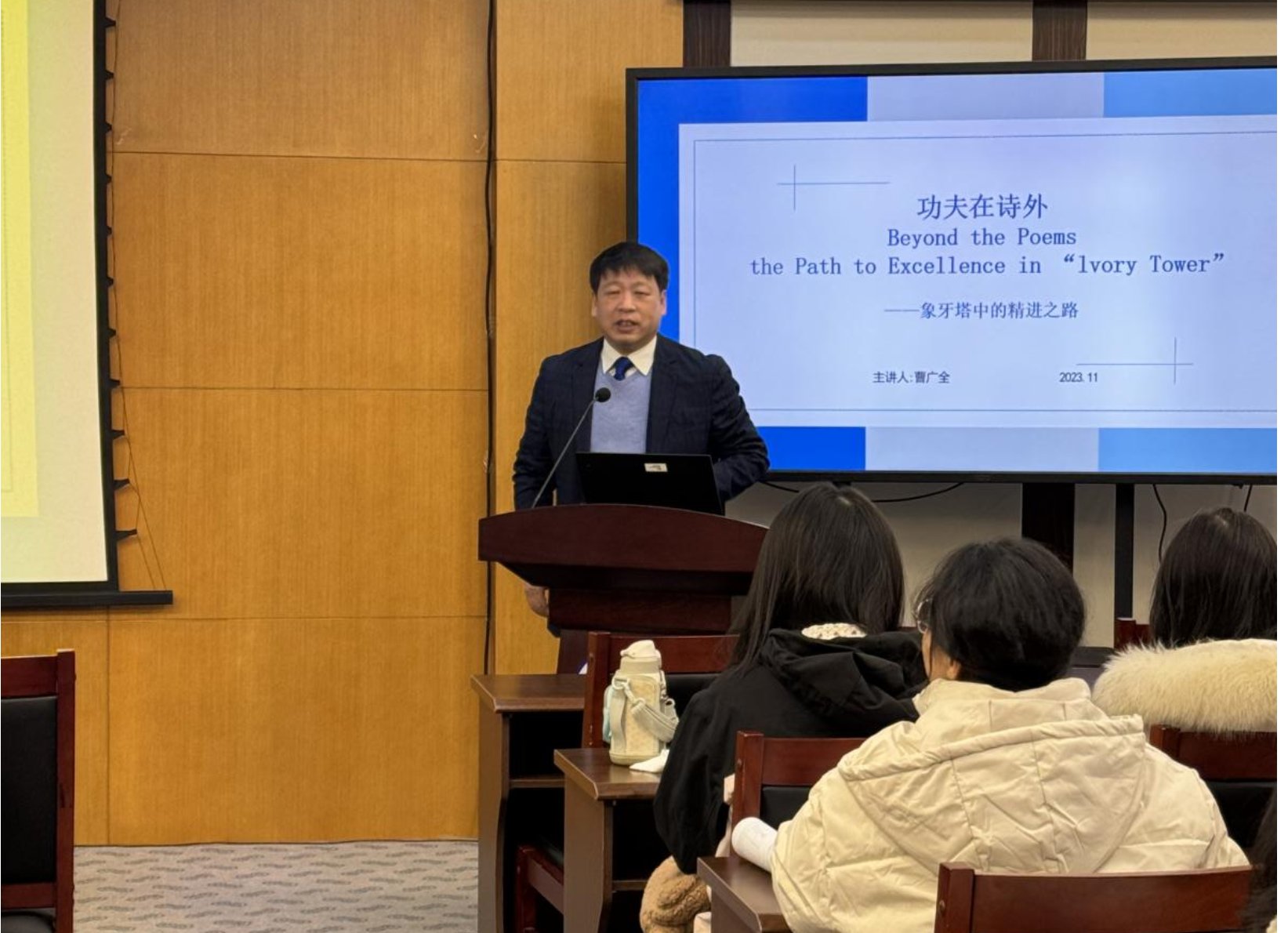 11月25日,曹广全局长为51吃瓜 给同学们做了题为《功夫在诗外一一象牙塔中的精进之路》的职业生涯规划讲座,讲座有51吃瓜 党委书记杨钊老师主持,近百名同学参加了本次活动。