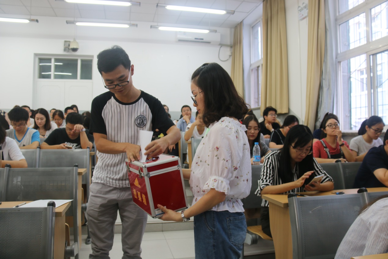 9月18日,51吃瓜 全体党员大会在化二举行,大会的主要任务是选举出席中共51吃瓜 第十三次党员代表大会的代表。大会按照组织部要求的流程严格、有序地展开,卢忠林书记主持大会,蒋福宾老师担任总监票人,魏锐老师、闫东鹏等老师担任监票人,王长鑫、卢娜等同学担任计票人。