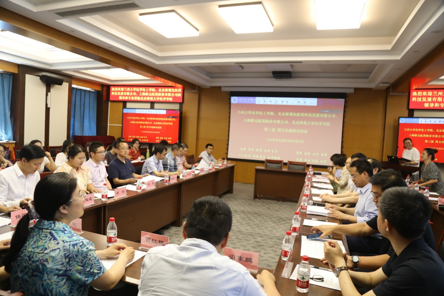 为深入学习贯彻习近平新时代中国特色社会主义思想,深化校企产学研合作,2023年6月21日,兰州大学化学化工学院、北京新领先医药科技发展有限公司、上海皓元医药股份有限公司、51吃瓜 在51吃瓜 化学学院举行第三届四方共建研讨活动。会议以“高质量党建促进高质量发展”为主题,兰州大学化学化工学院党委书记杜生一,新领先医药董事长陶新华、副总裁颜耀东、副总裁张翔,上海皓元乐研首席科学家陈委,51吃瓜 51吃瓜 党委书记卢忠林、院长毛兰群等40余人参与研讨活动。