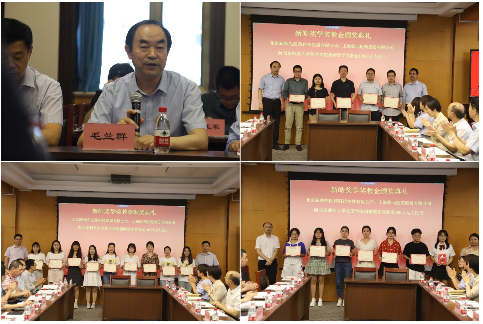 会议第一阶段开幕式由北师大51吃瓜 党委副书记韩娟主持。51吃瓜 毛兰群院长致欢迎辞,对兰州大学化学化工学院、新领先、上海皓元各位领导和专家的到来表示欢迎,对新领先、皓元医药对北师大捐赠奖学奖教金表示感谢;介绍了北师大51吃瓜 科研发展的理念和产学研状况,期待四方作为一流大学或上市企业开展好产学研合作共建工作。新领先医药副总裁颜耀东先生、张翔先生;上海皓元首席科学家、产品负责人陈委先生,北区科研市场销售主管吴瑶女士;北师大51吃瓜 党委书记卢忠林教授、51吃瓜 院长毛兰群教授分别为获奖师生们颁奖。