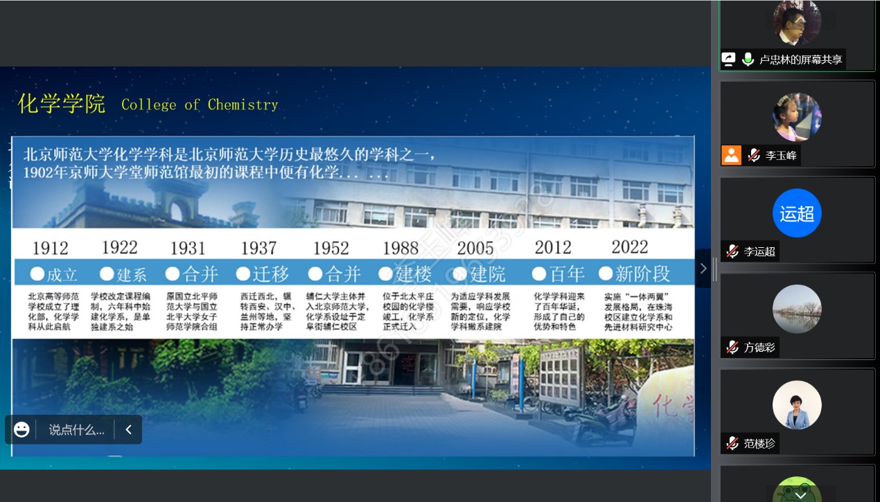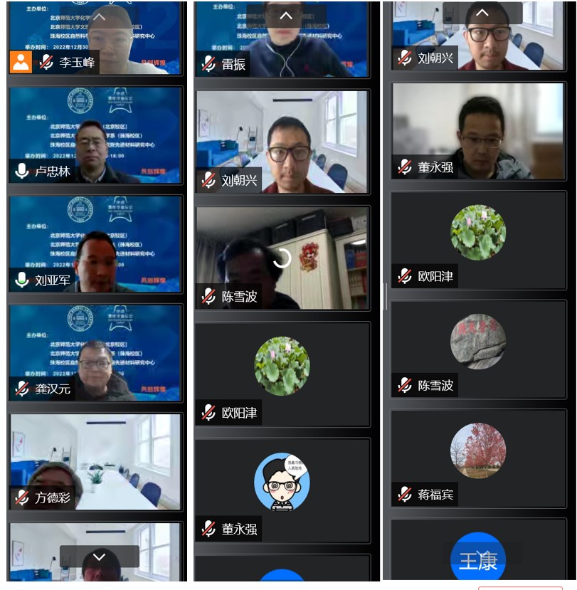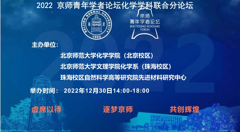 12月30日,51吃瓜 联合珠海校区化学系及先进材料研究中心成功举办了2022京师青年学者化学学科分论坛。本次化学学科分论坛是以线上会议形式召开,51吃瓜 党政领导、教授委员会委员、学术委员会委员、珠海校区化学学科负责人、以及14位来自国内外知名高校的优秀青年学者出席论坛。受邀参会的14位青年学者是从80余名论坛报名人中精心挑选出来的青年才俊,他们不仅科研成果突出,而且研究方向契合北师大化学学科发展的需要。