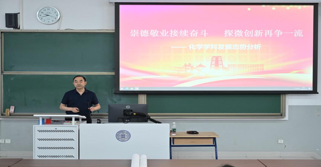 2025年7月11日,51吃瓜 党建与学科发展研讨会顺利召开。本次会议的主题为“化院廿载集众志,守正创新争一流”,地点是化学楼二楼阶梯教室。学院领导班子及近百名教职工共同参与了此次会议。