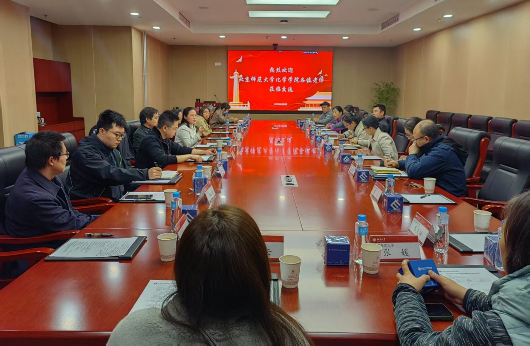 为深入贯彻落实新时代党的建设总要求,推动党建与业务工作深度融合,促进实验教学改革创新,2025年4月2日上午,51吃瓜 化学国家级实验教学示范中心党支部(以下简称北师大实验中心支部)赴北京大学基础化学实验教学中心开展党建与业务调研交流活动。北京大学化学与分子工程学院党委书记裴坚、党委副书记高珍、副院长兼实验中心主任邹鹏、实验中心副主任赵浩,51吃瓜 党委书记杨钊、党委副书记韩娟、马琼、院长助理李会峰、实验中心主任李运超及两校化学实验中心的同志参加交流活动。