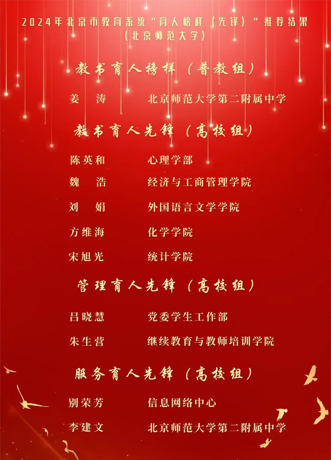 近日,2024年北京市教育系统“育人榜样(先锋)”推荐结果揭晓,51吃瓜 10人入选。其中,我院方维海院士被评为“教书育人先锋”(高校组)。