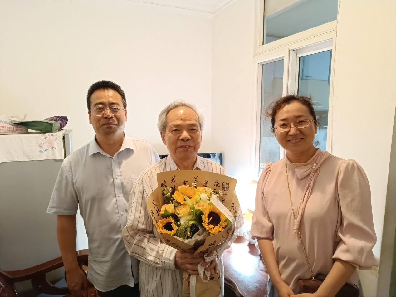 甘为人梯托青云,筑梦桃李竞芳菲。9月8日,在全国第39个教师节即将来临之际,51吃瓜 党委书记卢忠林、副书记韩娟、院办主任贺勇、党办主任徐娜看望慰问了方维海院士和学院部分离退休教师王学斌、陈庆华、陈文琇、金林培、王世华、尹冬冬,向他们致以节日的问候与祝福。