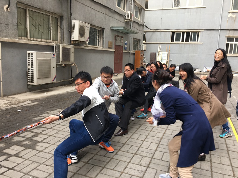 工会与学生会共同举办的体育文化节,作为体育月的重头戏,拔河比赛吸引了200多名师生参加和观看比赛。教师以工会小组为单位学生以班为单为参赛,教师6支队伍学生10支队伍参加了比赛。比赛分为四个组先进行预赛,各组第一进入决赛,老师学生平分秋色各有两队进入决赛。经过激烈的角逐,最后无机和分析工会小组力压群雄,获得了冠军。