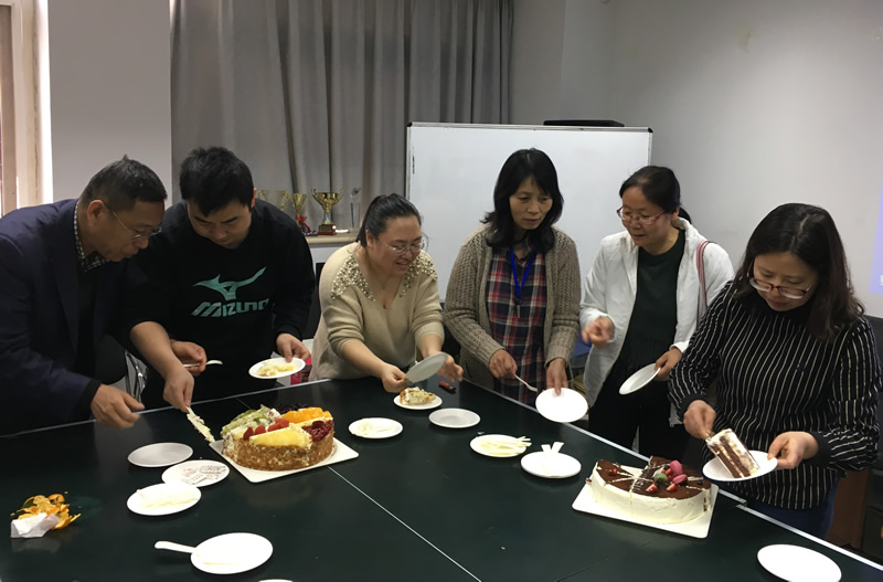 领导和工会委员向过生日的老师表示祝贺。在生日歌的祝福下,大家开心地切开蛋糕,共祝生日快乐。“生日集体庆祝会”是我院坚持多年开展的一项活动,是学院文化建设和凝聚学院教职工的温暖工程,得到了学院领导的大力支持,也受到教师们的热烈欢迎。通过活动,让每一位老师感受到学院大家庭的温暖与关怀,促进教师之间的交流,提升学院文化建设,让工会真正成为教师之家。