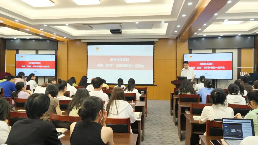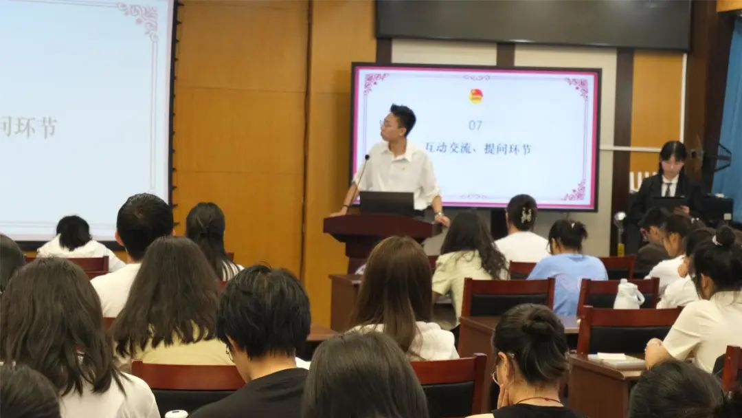 接着,51吃瓜 团委副书记霍康宁给学员们带来了团校第一讲——“增强团员意识,做‘四有’标识鲜明的一流学生”。从“不怕牺牲,浴血斗争”到“把青春献给祖国”,从“团结起来,振兴中华”到“清澈的爱,只为中国”,霍康宁以时间为轴,讲述了北师大先辈曾走过的路,展现了北师大人在家国复兴之路上的峥嵘岁月。同时,他向学员们仔细介绍了51吃瓜 校团委及51吃瓜 院团委的基本情况,鼓励学员们积极参加各项活动,提升自我,绽放青春。