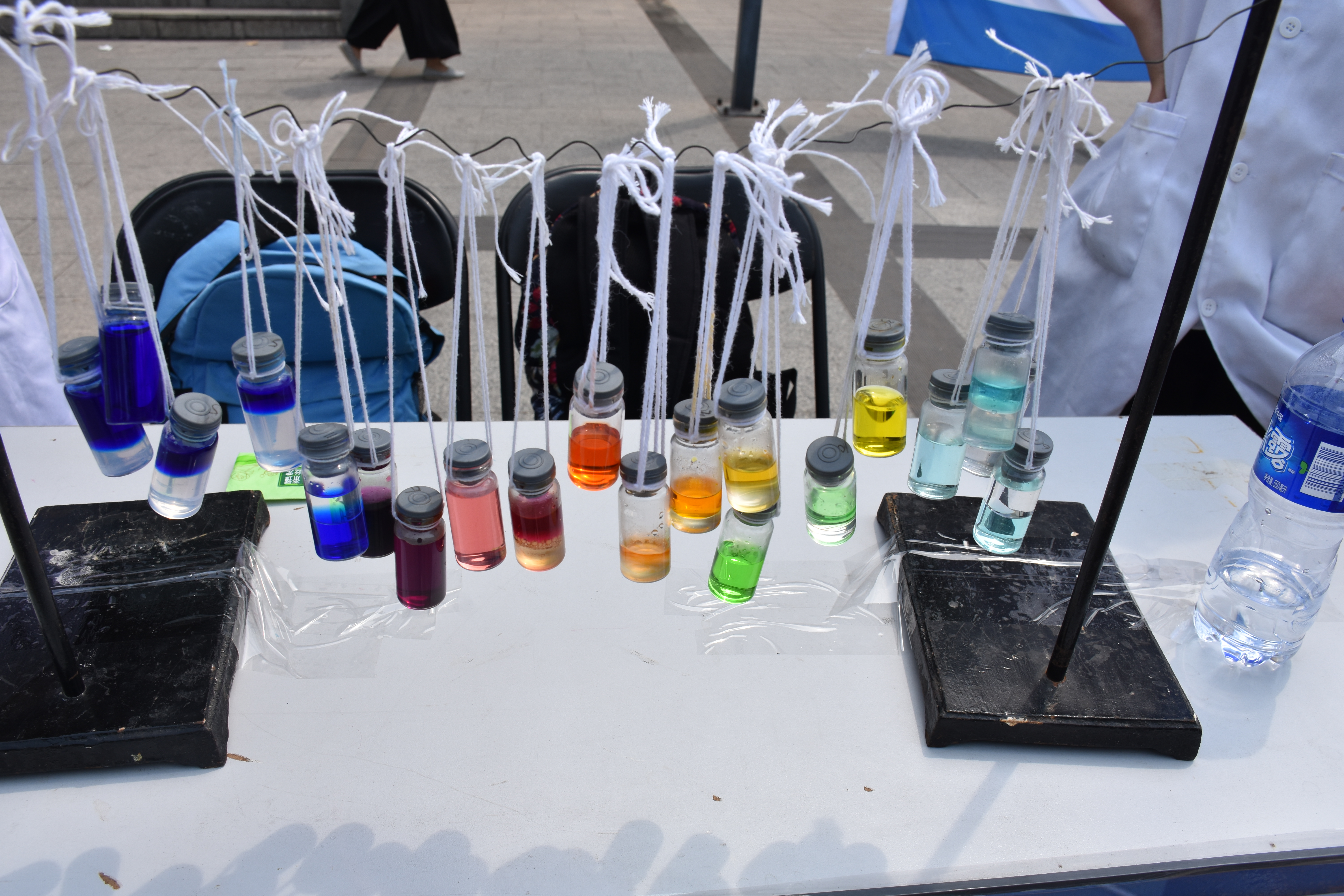 实验一条街位于邱季端北侧,卢忠林老师课题组和汪辉亮教授课题组的研究生分别向公众展示了生物柴油和可变性水凝胶的实验;我院同学向公众展示了大象牙膏、水中花园、晴雨花、喷雾作画等13个精彩有趣的化学实验,并对实验现象和原理进行了详细的解释。化学知识展板位于东西操场之间,我院同学在展板前为公众详细的讲解了生活中的化学知识和前沿的化学知识。化学趣味猜谜活动让公众感受化学名词的魅力,向公众普及日常生活中的化学知识。手工坊活动让公众亲手制作护手霜和蜡烛,感受化学实验的乐趣和奇妙。