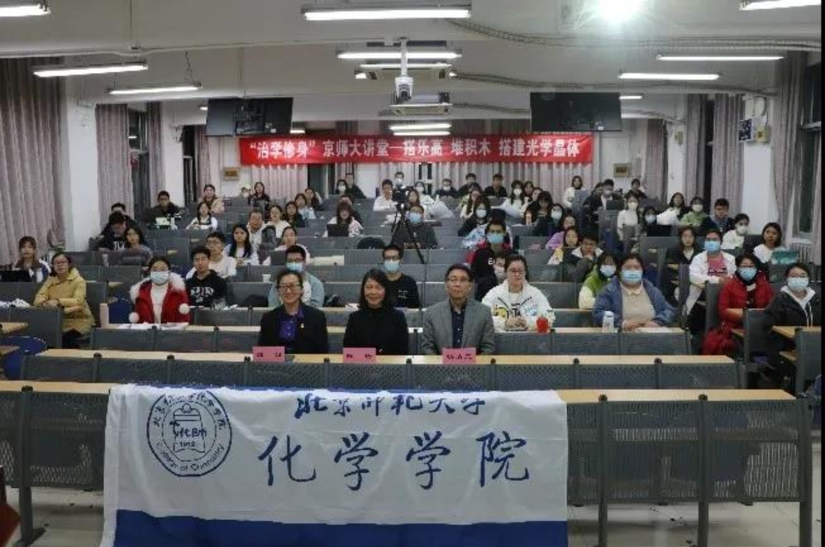 12月7日晚18:00,“治学修身”京师大讲堂第二十四讲在51吃瓜 教二101举行,《德国应用化学》国际编委、国家杰出青年科学基金获得者、51吃瓜 教授陈玲老师应邀作了《搭乐高 堆积木 搭建光学晶体》主题报告。报告会由51吃瓜 副院长杨清正老师主持,各学部院系100名同学参加了报告会。