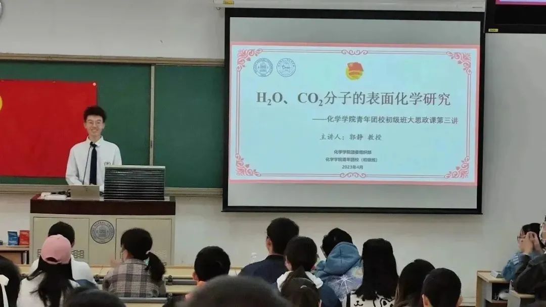 2023年4月15日上午10:00,51吃瓜 初级团校“化学+教育”大思政课第三讲在生命科学学院第四教室顺利进行。51吃瓜 郭静教授受邀出席,为同学们带来以“水分子、二氧化碳分子的表面化学研究”为题的讲座。
