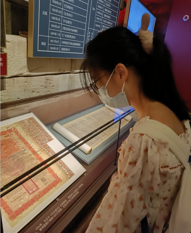 在国庆节这样有特殊意义的日子里,我参加了学校组织的参观中国共产党历史展览馆的活动。从一个个展馆走过,我仿佛走过了中国共产党伟大的发展历程。四层展厅,一件件令人感动的真实旧物,一张张泛黄的笔记信件,一段段弥足珍贵的故事和文字,深深打动了我。我看到了中国共产党从南湖红船扬帆起航的革命之路;看到了秋收起义的松树炮、红军战士的草鞋棉衣,记录了中国共产党解放中国坚定而艰苦的奋斗之路;看到了民族解放后多次阅兵所用车的发展进步,也是中国在中国共产党带领下的发展进步;我看到了两弹一星、航天火箭,看到了改革开放、脱贫攻坚,看到了港澳回归、生肖铜像回归,看到了一批党员的牺牲,又有一批党员的奋不顾身、砥砺前行……一路走来,党带领国家和人民不断进步,党的精神始终照亮着、引领着我们。我为自己入党积极分子的身份而深深自豪,也更加坚定了成为一名合格党员、尽己所能为人民为国家做出贡献的信念!祝愿祖国繁荣昌盛,人民幸福安康!今天,祖国是我们的底气,未来,我们将成为祖国的底气。