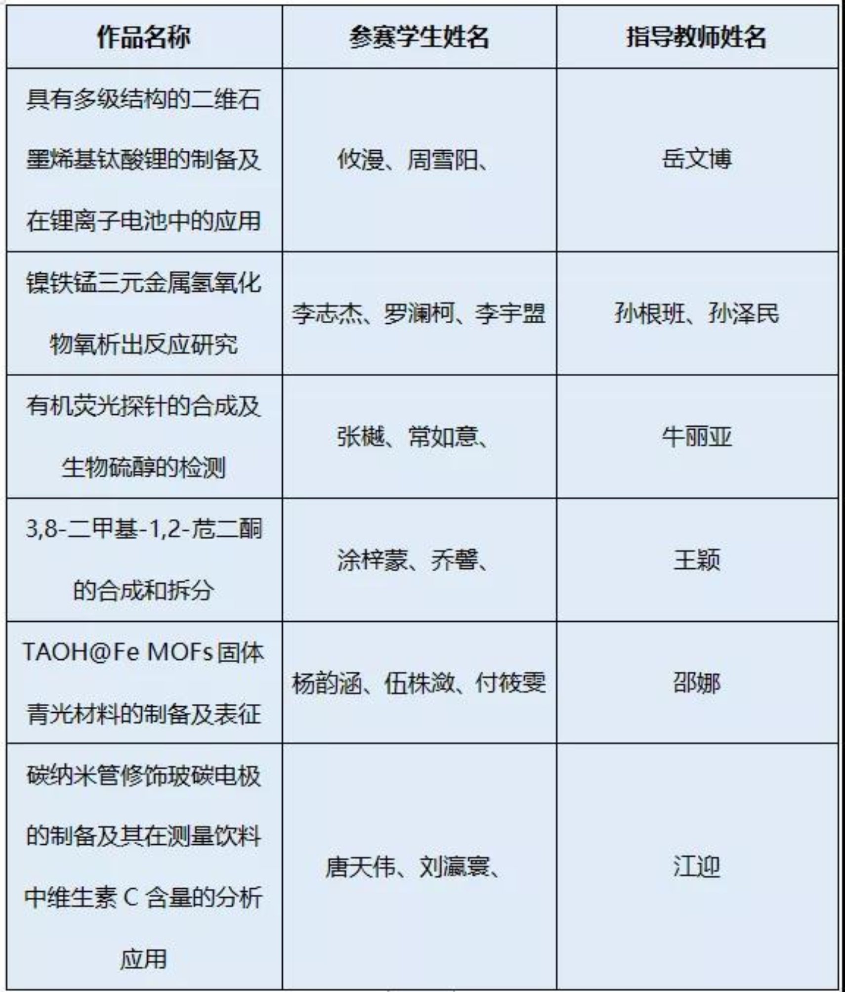 希望大家以他们为榜样,不断增强化学实验和学术能力,以扎实、优良的实验技能为学校和个人争得更多、更高的荣誉,也希望大家积极参加各类竞赛,以此锻炼自己,提高自己的综合能力!