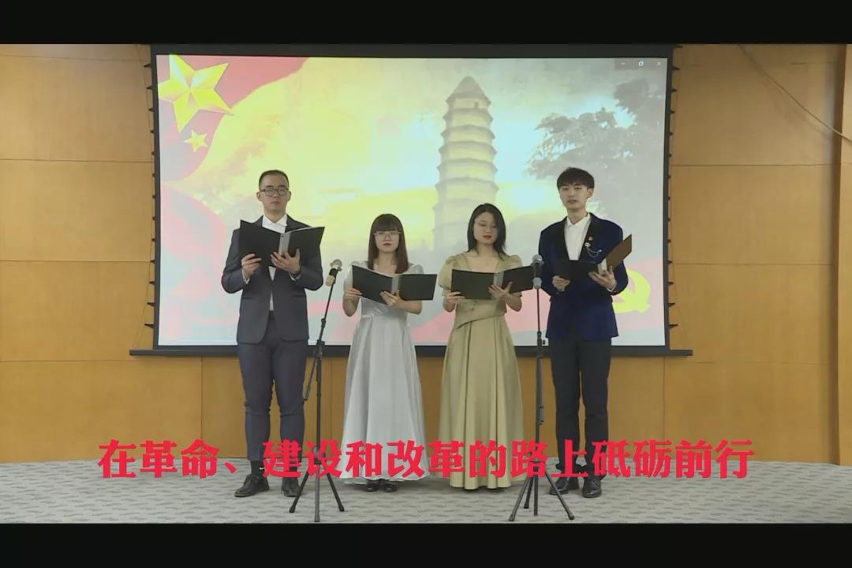 倏忽百年,沧桑巨变。从风雨飘摇的嘉兴南湖,到危机四伏的遵义古城;从灯影摇曳的延安窑洞,到红旗招展的人民大会堂。百年来,中国共产党始终同人民一道,跋涉浩浩长征,驶过漫漫航程。19级联队带来的合唱《唱支山歌给党听》深切表达了我们对党的崇敬。