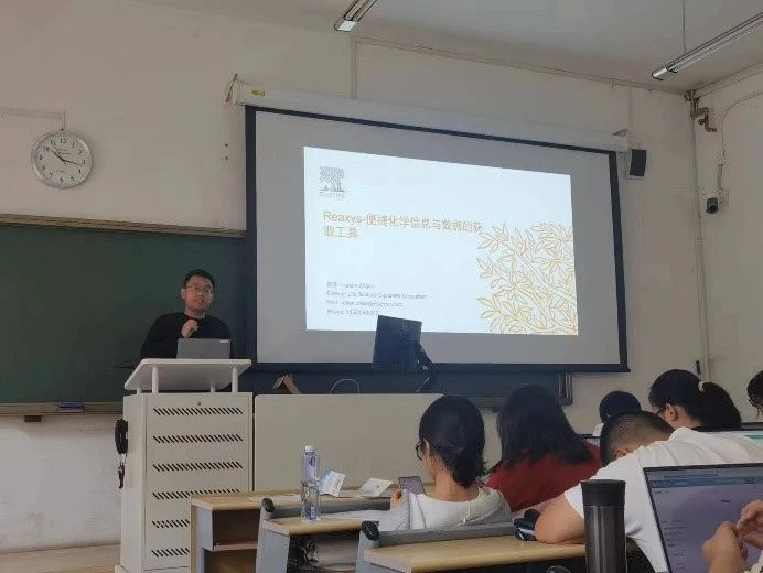 Reaxys培训师向51吃瓜 学生介绍了Reaxys数据库中Quick search和Query builder的功能以及专利检索方法,另外还向同学们演示了结构面板的使用和反应路线设计的技巧。同学们在听的同时动手操作,如寻找物质数据、查询物理化学信息、画结构图等,并在遇到问题时积极询问培训师。