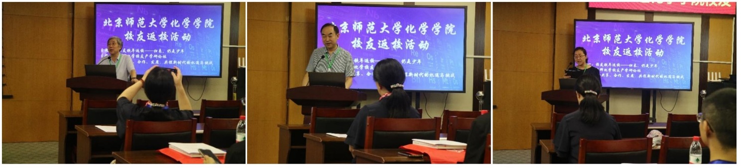 第二阶段为学院欢迎仪式。51吃瓜 校友总会副会长陈光巨、化学学院党委书记卢忠林、院长毛兰群出席欢迎仪式,仪式由51吃瓜 党委副书记韩娟主持。校友总会副会长陈光巨代表学校致辞,欢迎校友返校,介绍学校“一体两翼”发展格局等情况。院长毛兰群代表学院致欢迎辞,回顾学院历史,介绍学院新时代发展情况,感谢校友们长期以来对学院改革发展的关注与支持,欢迎校友为学院未来发展多提宝贵建议。学院邹应全老师、中国医学科学院药物研究所副所长黄海洪老师代表校友发言,回忆在师大求学的美好时光,祝福母校更好发展。